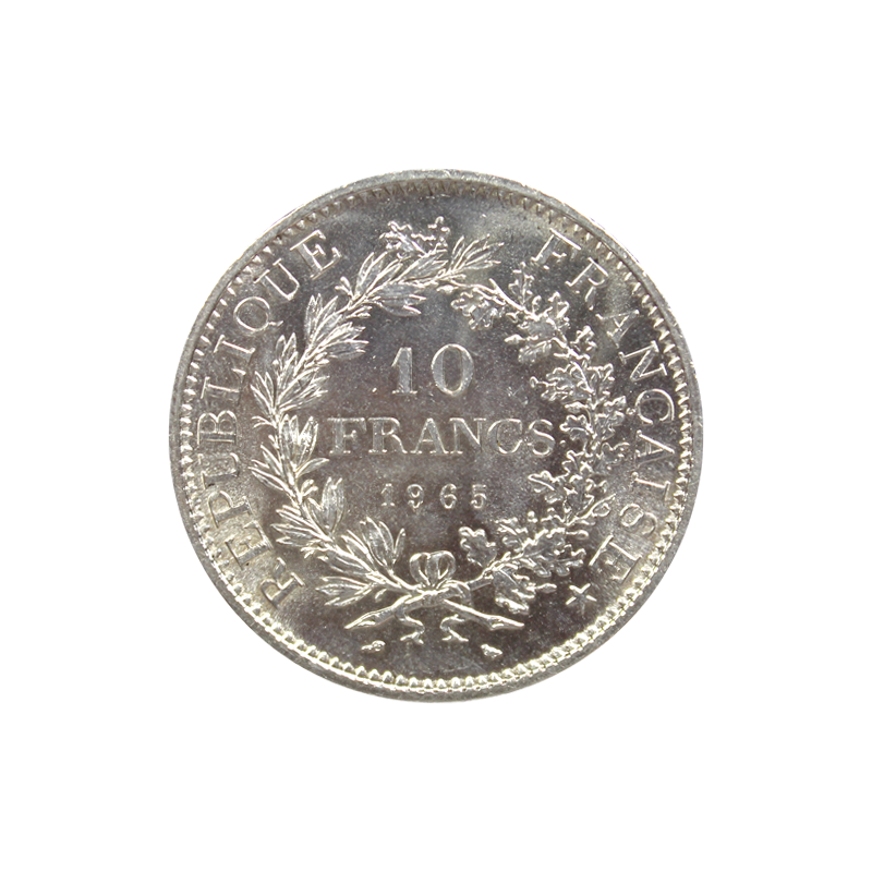 Frappée à partir de 1964, la pièce de 10 Francs Hercule est une pièce très prisée pour sa beauté et sa teneur en argent de 900 Millièmes. Elle sera fabriquée jusqu’en 1973 ; sa production sera stoppée à cause de la montée des cours de l’argent qui rendait sa fabrication trop onéreuse.