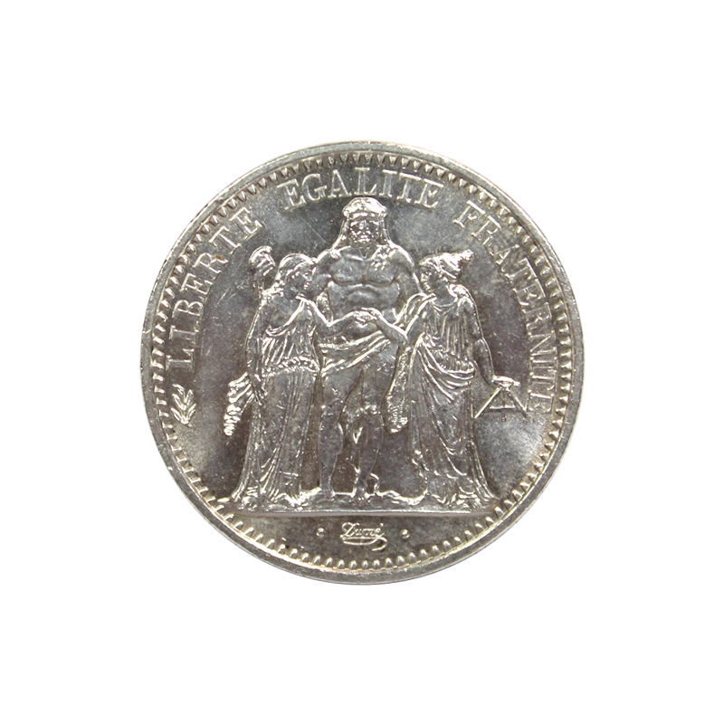 On peut également retrouver l’effigie d’Hercule sur des pièces de 50 Francs, également créés par Augustin Dupré.