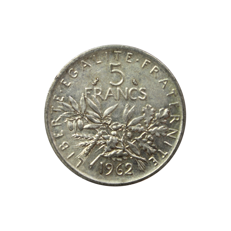 Frappée à partir de 1959, la pièce de 5 francs type semeuse, a été produite à plus de 195 millions d’exemplaires. Suivant un cours légal en France, elle servit donc de monnaie courante. Editées en argent jusqu’en 1969, les pièces de 5 Francs seront fabriquées en nickel après cette date du fait de la flambée des cours de l'argent.