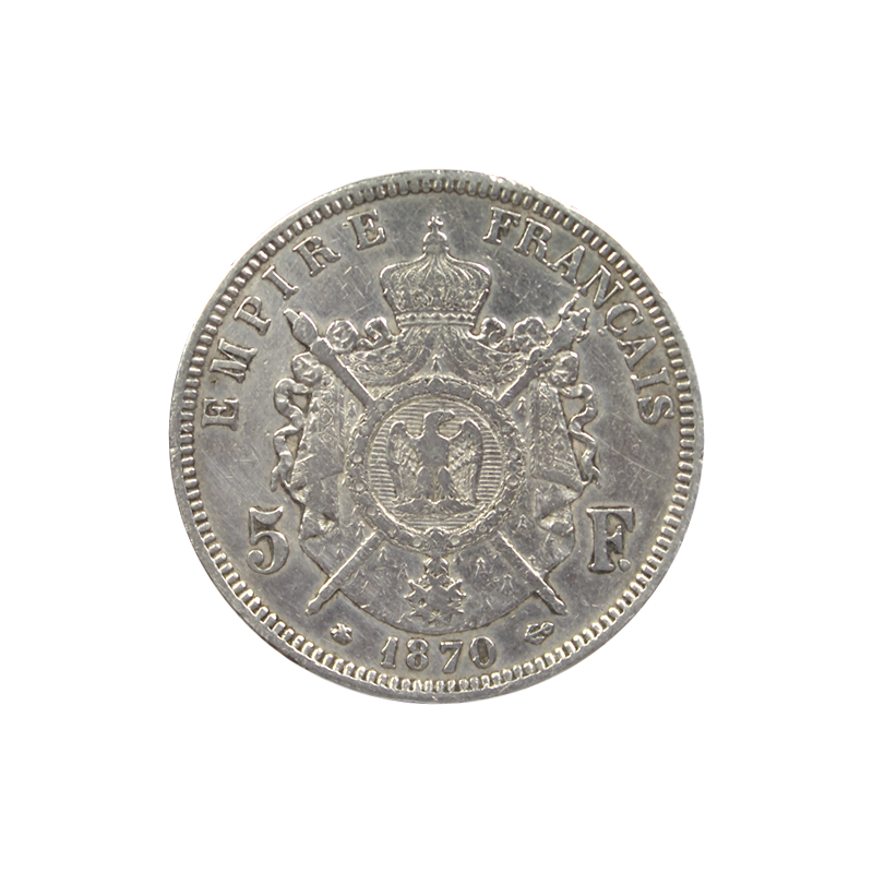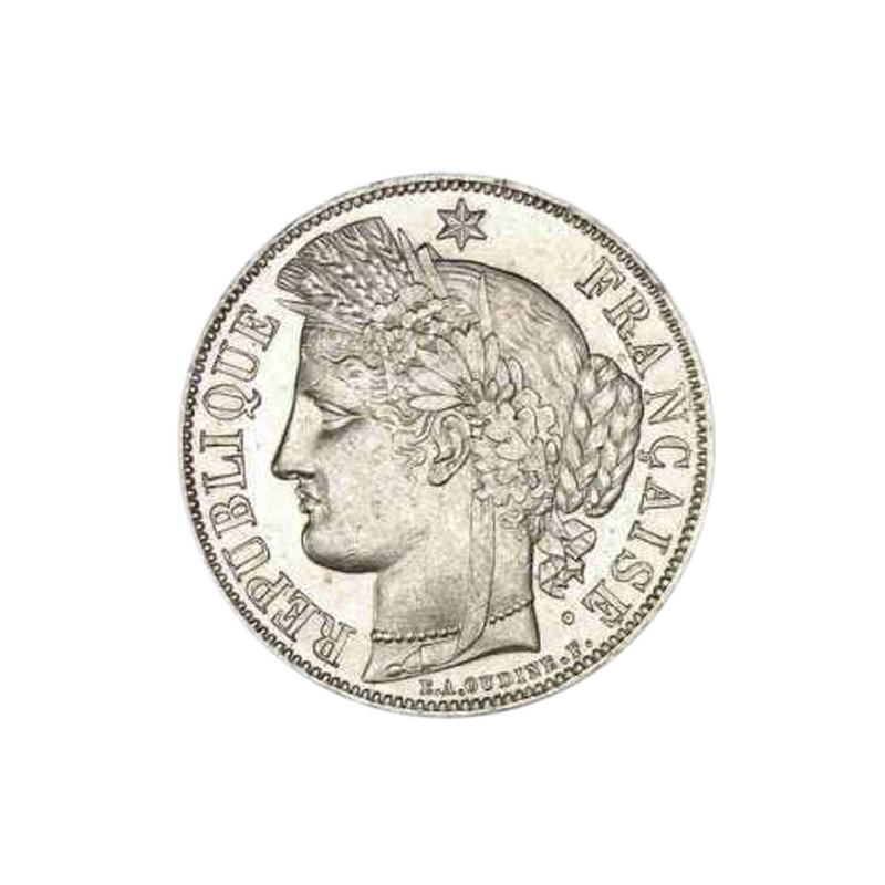La pièce de 5 Francs Ecu en argent est la version contemporaine de l’écu Blanc, frappé à partir de 1580. A l'époque, le conseil des monnaies décida d'éditer cette pièce d’une valeur de ¼ d’écu d’or soit 15 sols et ce, jusqu’au règne de Louis XIV. Sous le règne de ce dernier, l ‘écu Blanc va se faire appeler écu de 6 livres car son cours sera égal à cette valeur.