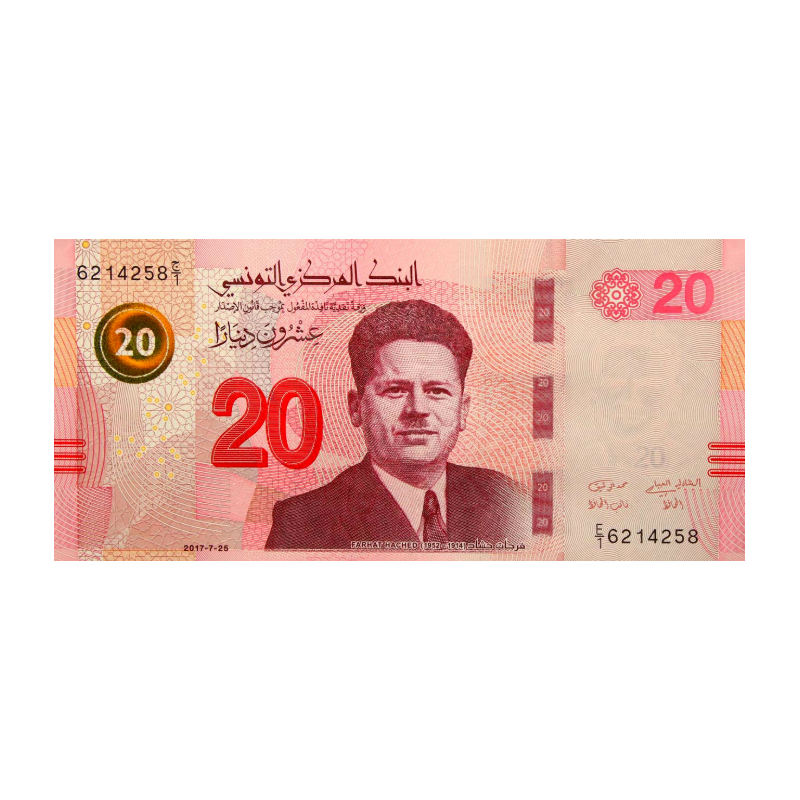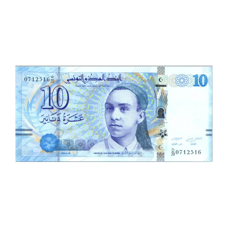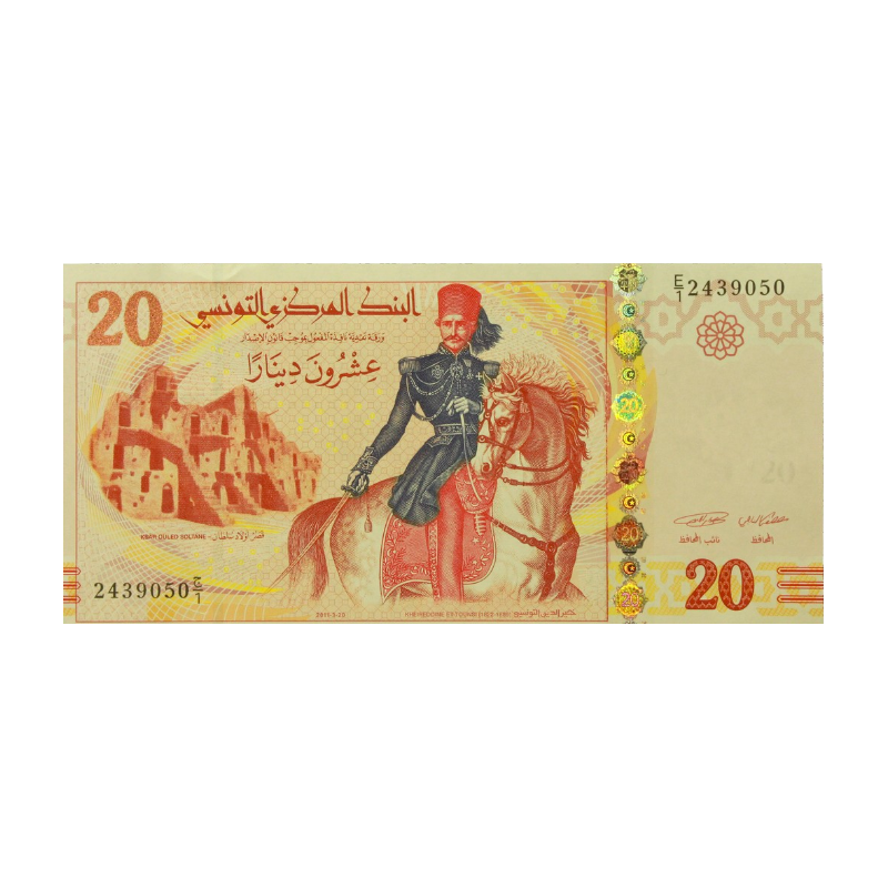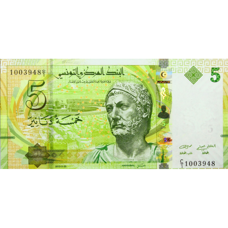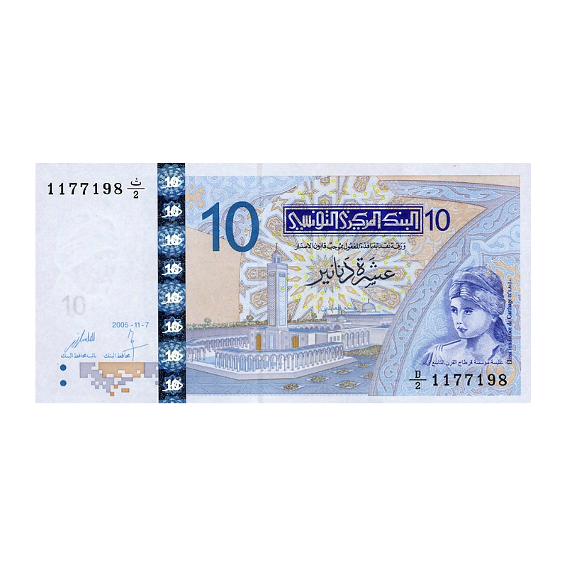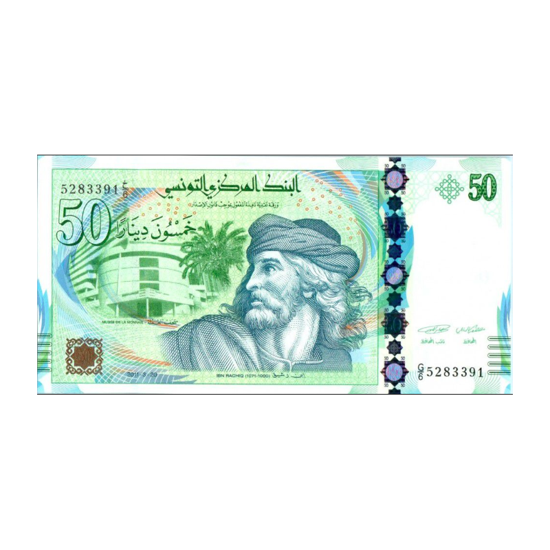 L'utilisation du dinar tunisien débute le 1er novembre 1958 pour remplacer le franc tunisien. Un dinar tunisien est convertible en 1000 millimes. Les billets sont sous coupures de 5,10,20 et 50 dinars.Ils sont respectivement dans l'ordre : vert clair, bleus, rouges et enfin vert foncé. Les billets ont été remplacés en 2011 à la demande du peuple suite à la révolution.