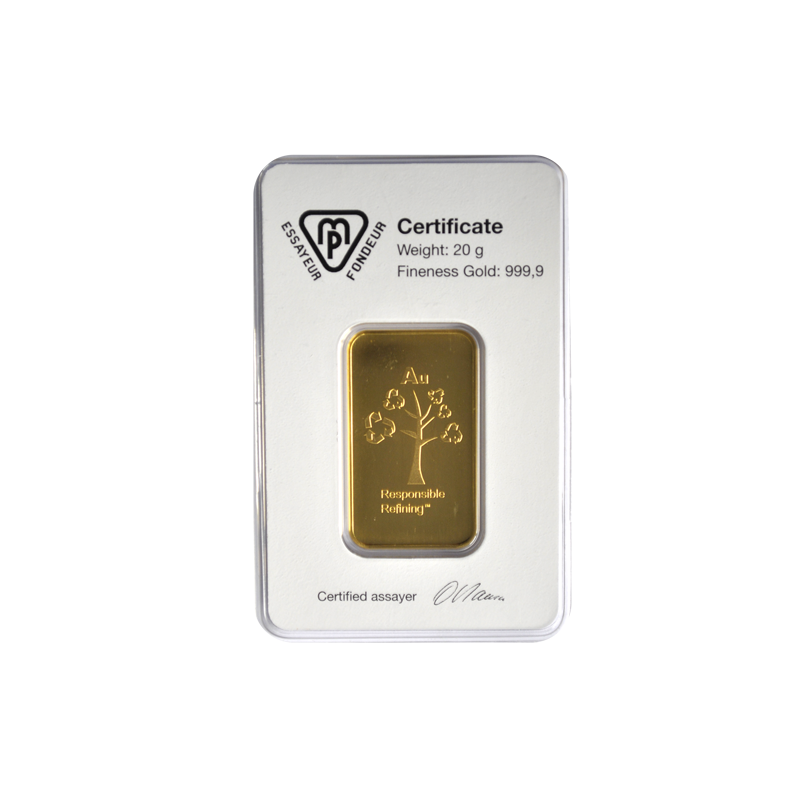 Vendu sous blister avec un numéro de scellé attestant de son authenticité, les lingotins en or de 20 g que nous vous vendons sont tous certifiés par la London Bullion Market Association, association qui répertorie la liste des fondeurs reconnus sur le marché international. Ils peuvent provenir de différents fondeurs tels que Argor, Metalor ou Umicore sans que cela ne fasse aucune différence à la revente.