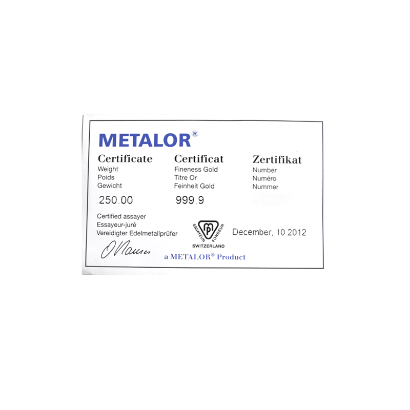 Par ailleurs, nous ne travaillons qu’avec des fondeurs reconnus et les produits sont tous certifiés par la LBMA (London Bullion Market Association), gage supplémentaire de leur qualité. Nous plaçons ces lingotins sous scellés avant de vous les remettre.