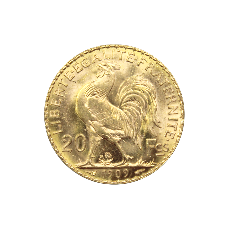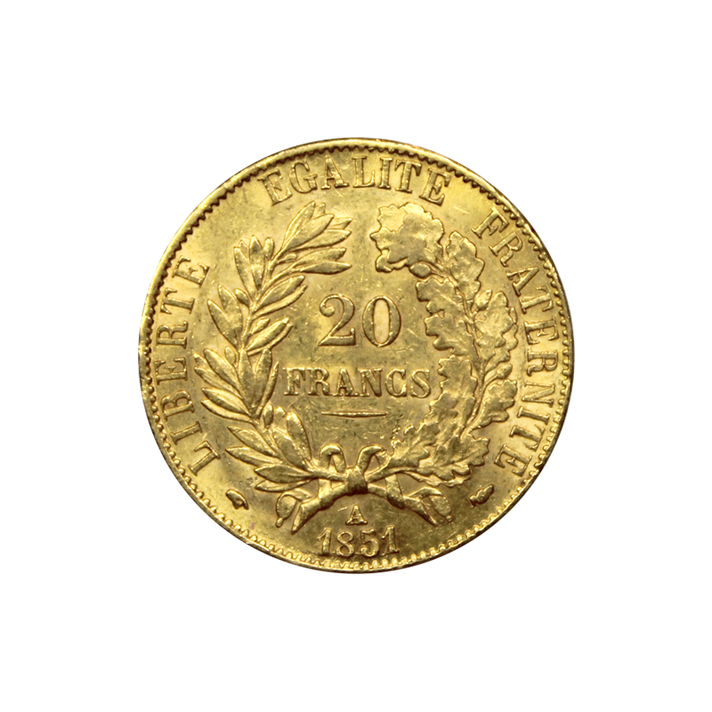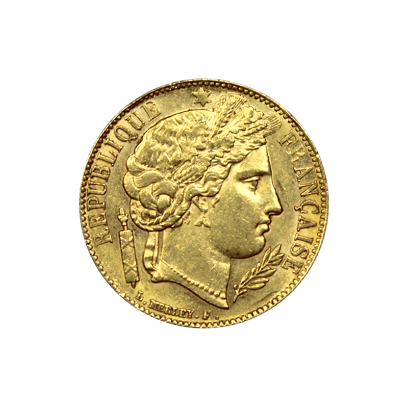Communément appelée "Louis d'or", cette pièce frappée entre 1803 et 1914 a la particularité de peser 6.45161 g.