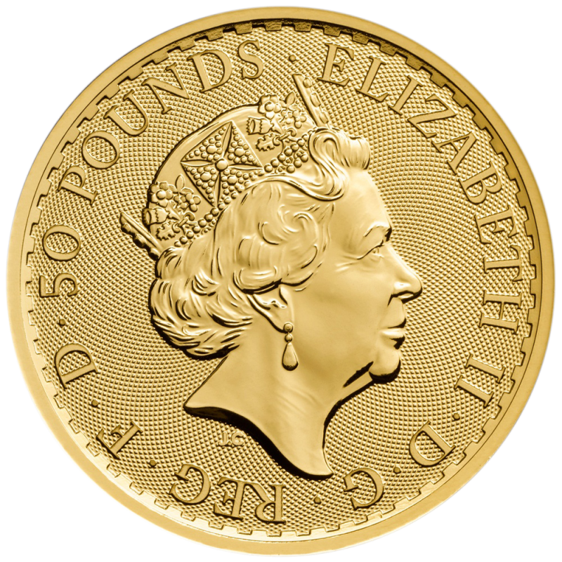 On peut lire la phrase " ELIZABETH II DEI GRATIA REGINA F D " (FIDEI DEFENSOR) ainsi que la valeur faciale de la pièce qui est de 50 pounds. Comme sur toutes les pièces britanniques et pays du Commonwealth, on retrouve également la représentation d’un buste de la reine d’Angleterre.