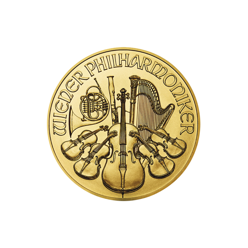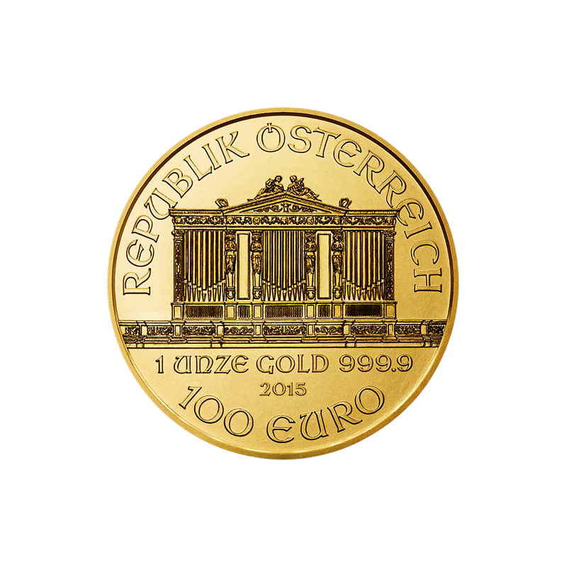 Au départ émise en schillings autrichiens, la Philharmonique 1 once est maintenant l'une des seules pièces d'or d'investissement affichant une valeur faciale en Euro.